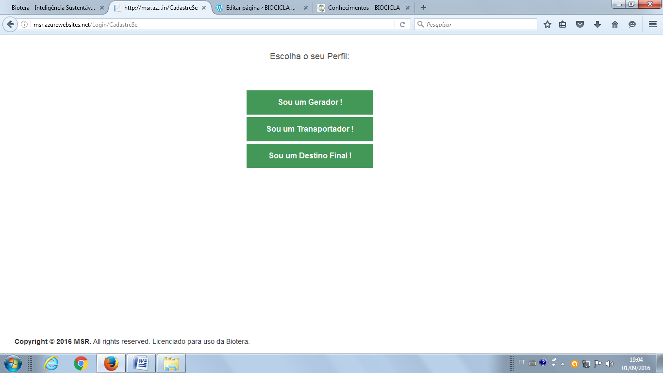 tela de entrada do msr